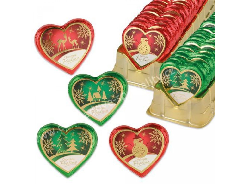 Günthart Vánoční čokoládové srdíčko zelené/červené 24g