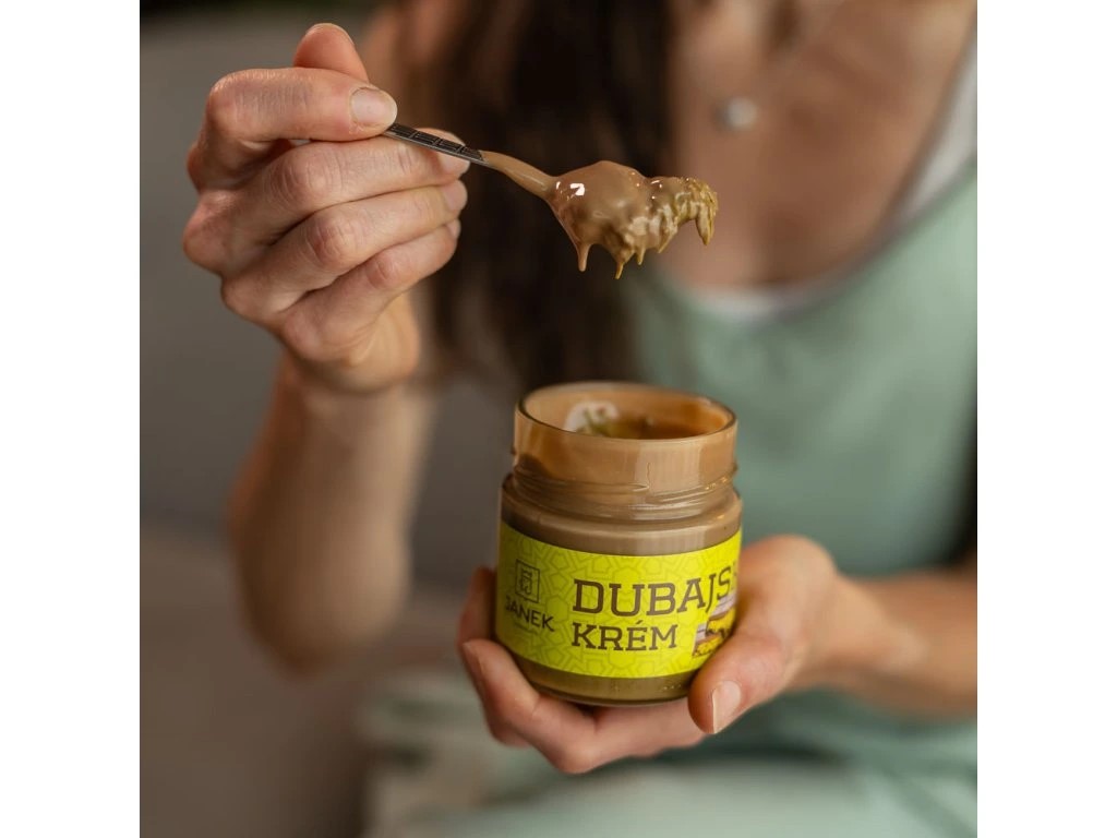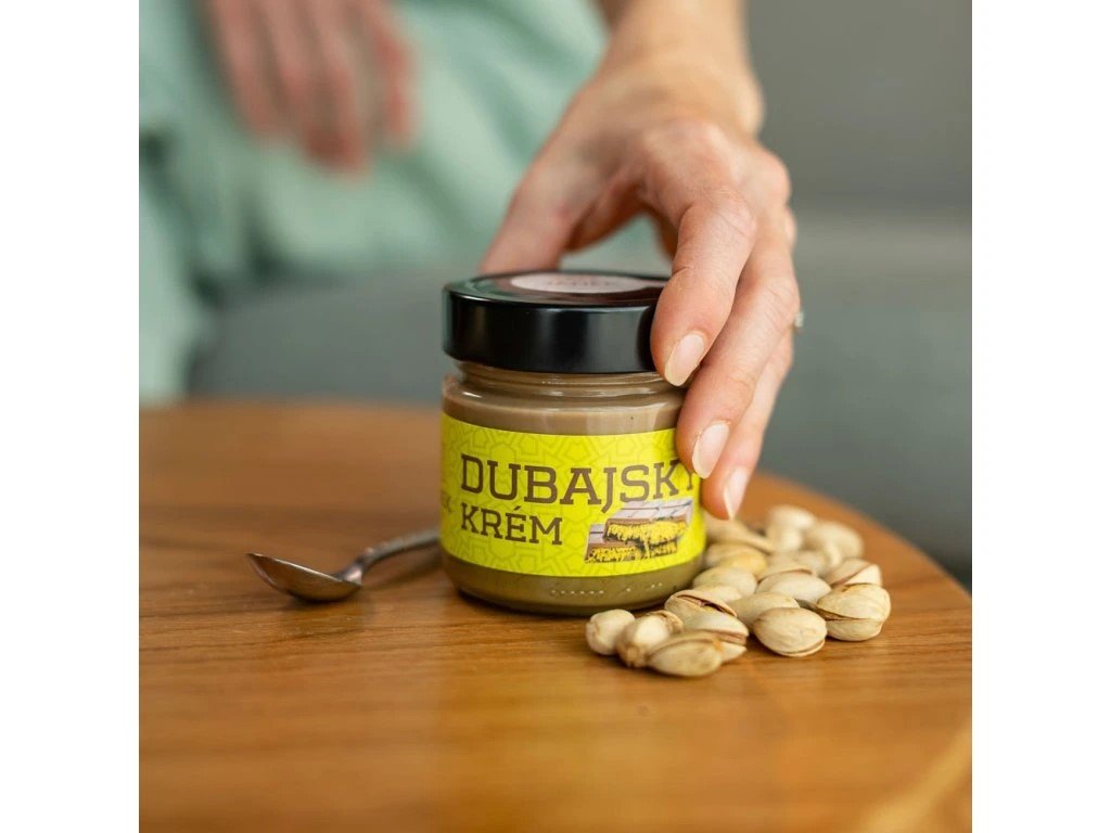 Složení: kaková hmota, kakaové máslo, pistáciová pasta 100%, arašídová pasta 100%, sušené mléko, cukr, knafeh (pšeničná mouka, pšeničný škrob, sůl, sójový lecitin, slunečnicový olej, sorban draselný, voda), přepuštěné máslo.
