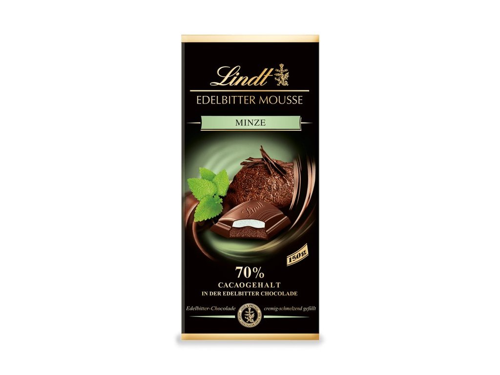 Obzvláště vysoký obsah kakaa v čokoládě (70 %) dodává této jemné hořké čokoládě typický aromatický tón hořké čokolády. To vše je završeno osvěžující mátovou náplní, která spolu se speciálně šlehanou pěnou z hořké čokolády tvoří jedinečný chuťový zážitek.