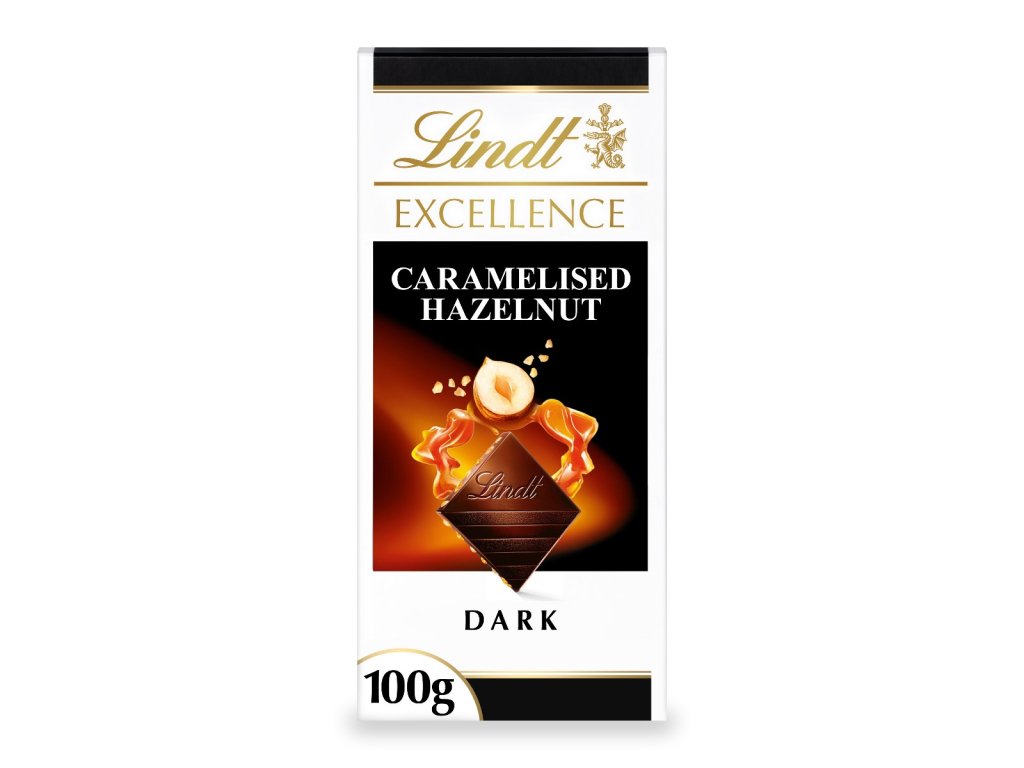 Lindt Excellence Hořká čokoláda s karamelizovanými lískovými ořechy a křupavými kousky karamelu 100g