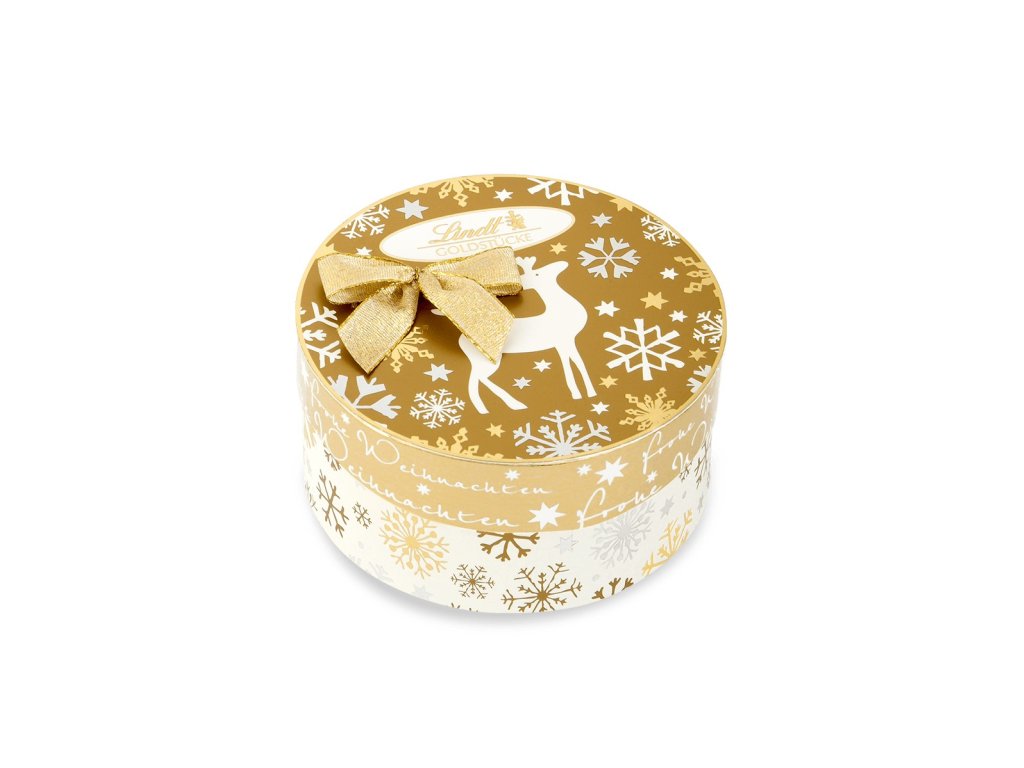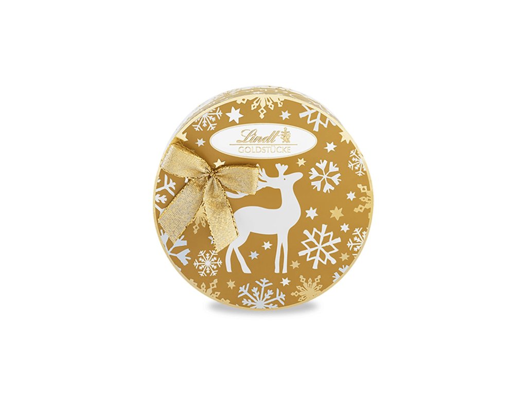 Když se o Vánocích setká zlatá a bílá, vznikne nádech luxusu. Mistři čokoládovny Lindt vytvořili vysoce kvalitní dárky s pečlivou pozorností k detailu a s těmito „zlatými kousky“ vytvářejí sváteční vánoční atmosféru. Elegantní kulatá krabička je naplněna exkluzivní směsí jemných čokoládových kuliček Lindt ve třech vánočních receptech: Pečené jablko, Vlašské ořechy a Skořice s koriandrem. Obsah (celkem 12 kusů):