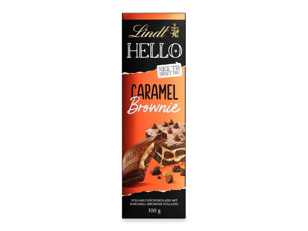 | Plněná mléčná čokoláda s karamelem (13 %) a brownie krém (23 %) s tmavými sušenkami (2 %) |