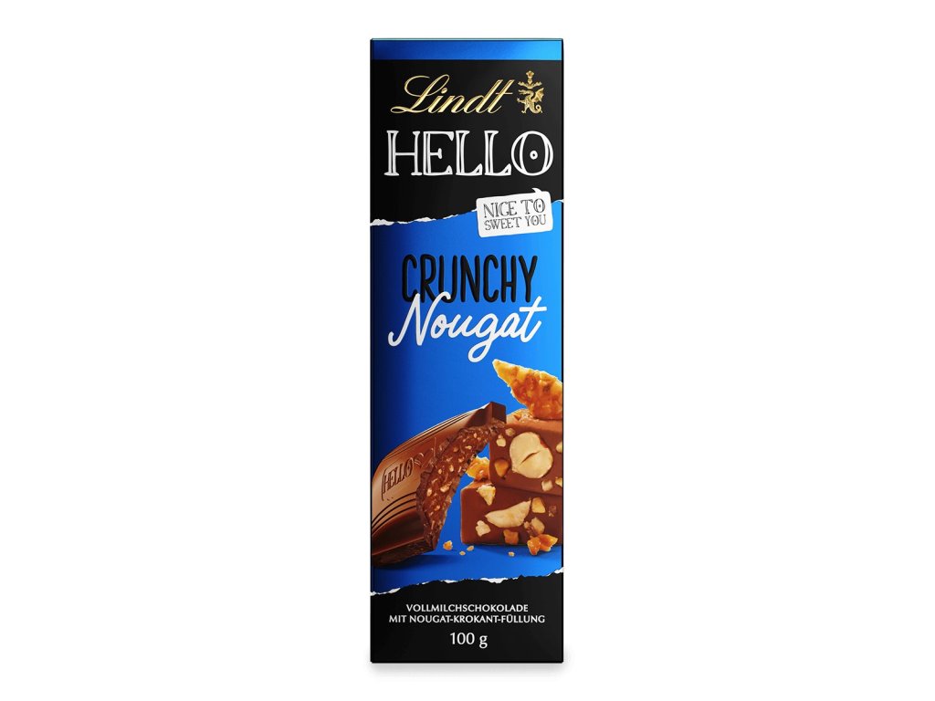 Objevte vzrušující kombinaci neodolatelně se rozplývající mléčné čokolády Lindt HELLO s nugátovou náplní s křupavými kousky oříšků a sušenek