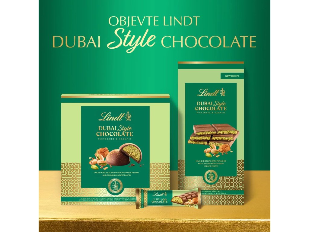 | Lindt: | dubajská čokoláda, mléčná |