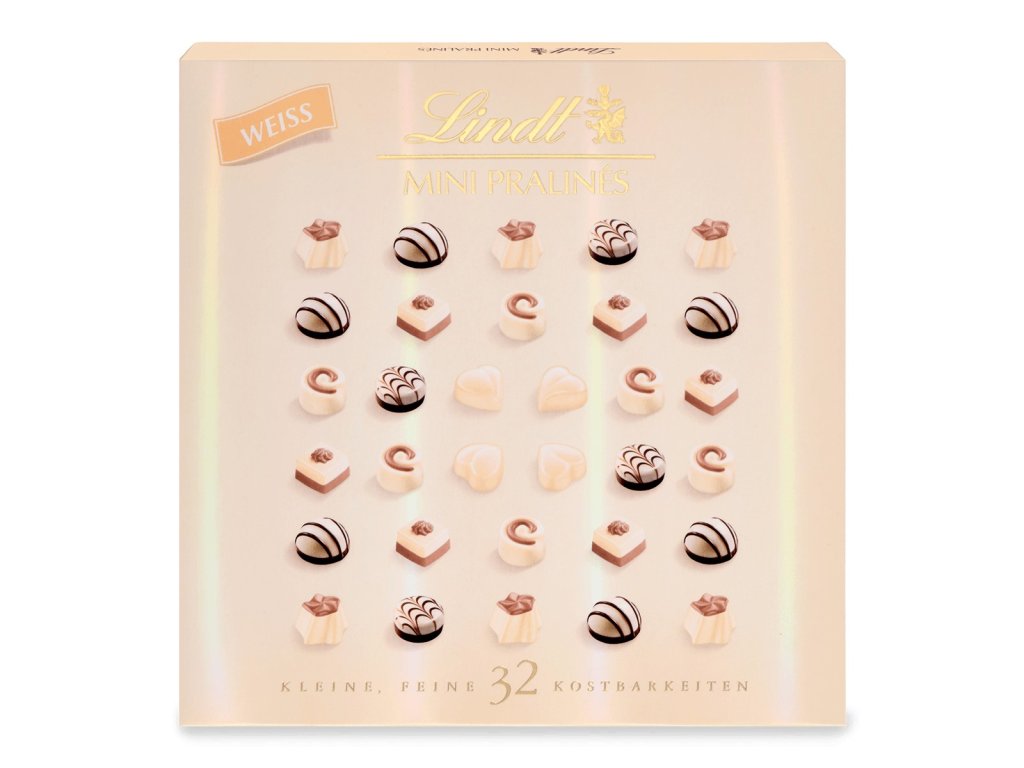 | Lindt: | mini pralinky, bílá čokoláda |