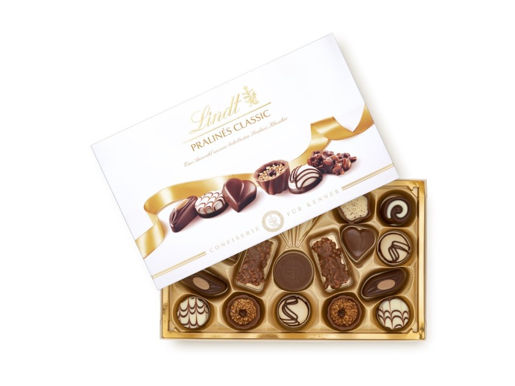 cukr, kakaové máslo, sušené plnotučné mléko, kakaová hmota, lískové ořechy, mandle, bezvodý mléčný tuk, sušené odstředěné mléko, laktóza, glukózový sirup, rostlinné tuky (palmový a kokosový v různém poměru), glukózo-fruktózový sirup, invertní cukr, plnotučné mléko, Marc de Champagne, citrónová kůra, pomerančová kůra, sušená smetana, emulgátory: sójový a slunečnicový lecitin, alkohol, pšeničná mouka, káva, přírodní aromata, extrakt ječného sladu, aromata, dextróza, zvlhčující látka: invertáza, smetana, vaječný bílek, regulátor kyselosti: kyselina citrónová, jedlá sůl, kakaový prášek se sníženým obsahem tuku, koncentrát citrónové šťávy, meruňková jádra, přírodní pomerančové aroma, sirup z karamelizovaného cukru. |
