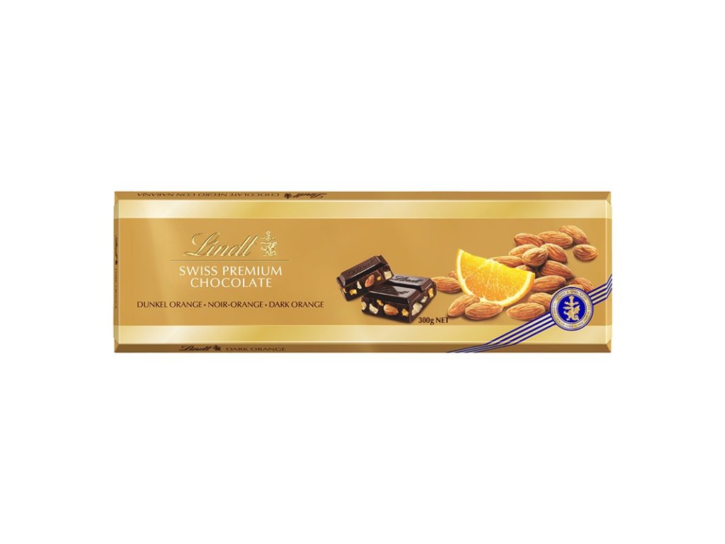 Lindt Švýcarská Hořká čokoláda s mandlemi a pomerančem 300g