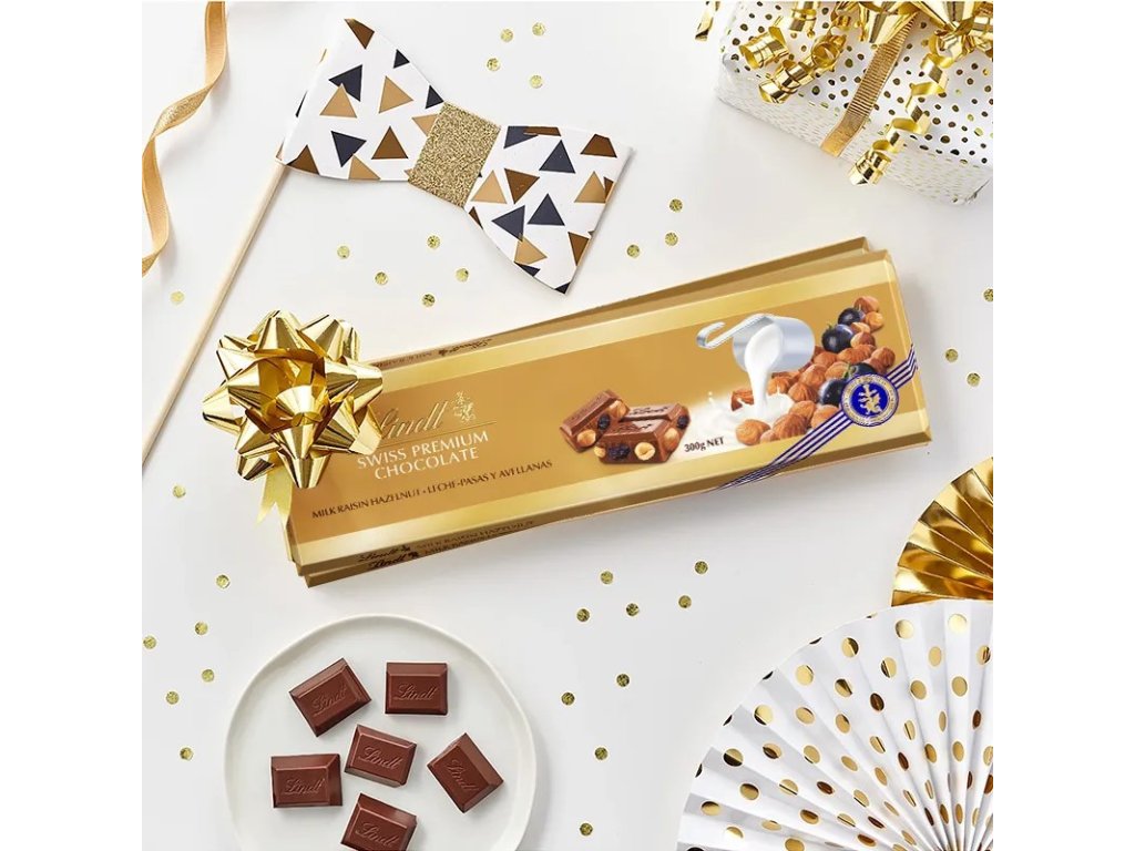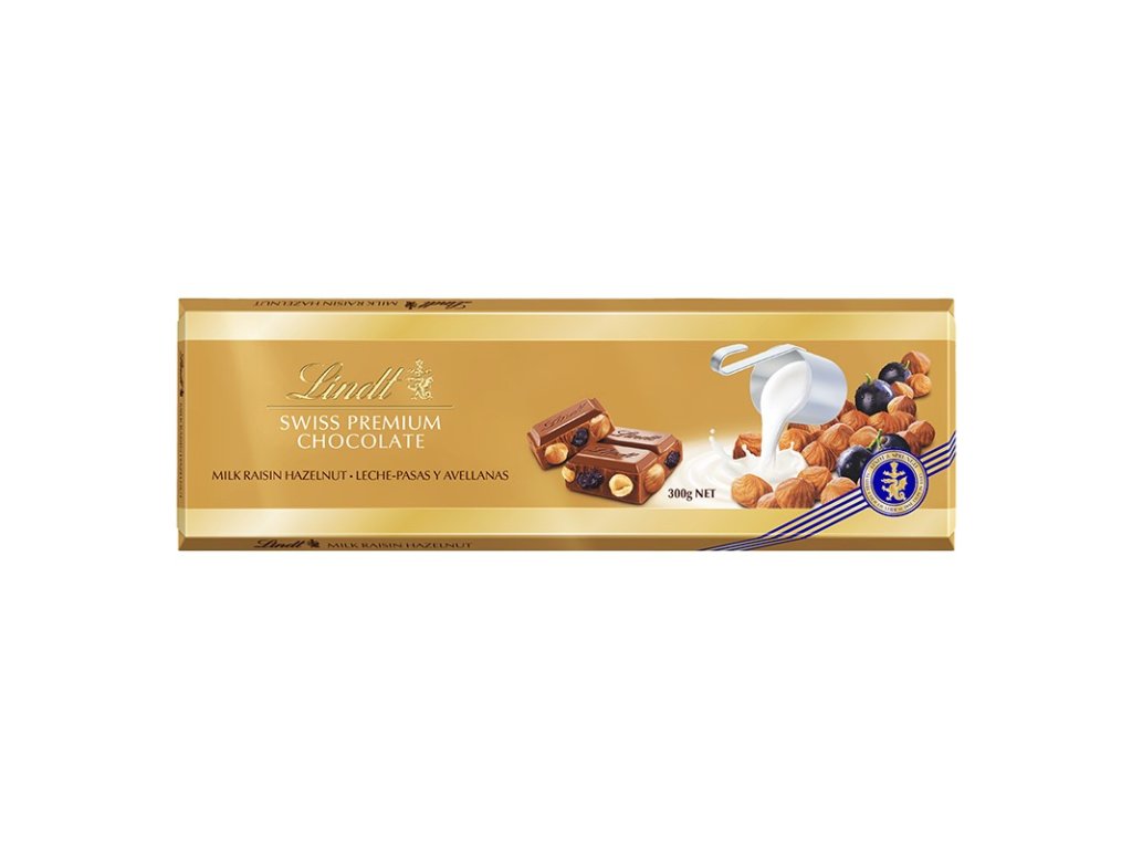 Lindt Švýcarská Mléčná čokoláda s rozinkami a oříšky 300g