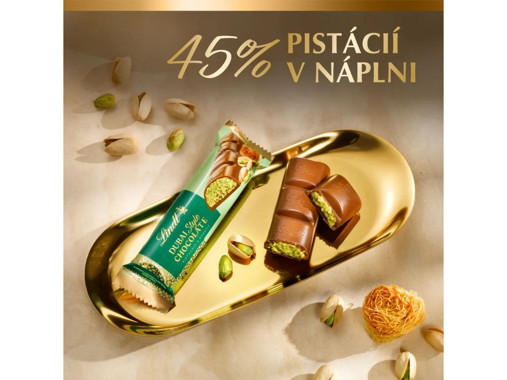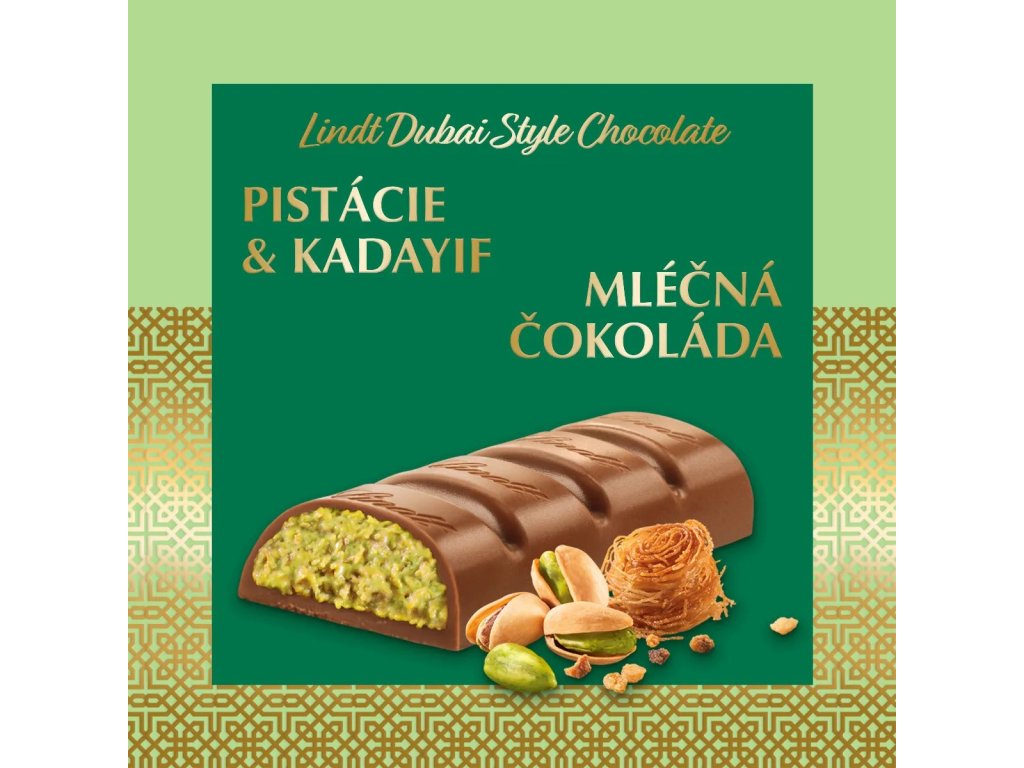 Složení: cukr, pistáciovo-cukrářská náplň 26% [pistácie* 45 %, cukrářské nitě* 10 % (pšeničná mouka, pitná voda, kukuřičný škrob, slunečnicový olej, jedlá sůl), cukr, bezvodý mléčný tuk, kakaové máslo, sušené plnotučné mléko, mandle, sušené odstředěné mléko, lískové ořechy, jedlá sůl, emulgátor: sójový lecitin, sirup z invertního cukru, aromata], kakaové máslo, sušené plnotučné mléko, kakaová hmota*, laktóza, sušené odstředěné mléko, emulgátor: sójový lecitin, extrakt z ječného sladu, ovocné a zeleninové koncentráty (světlice barvířská, citron), aroma. |
