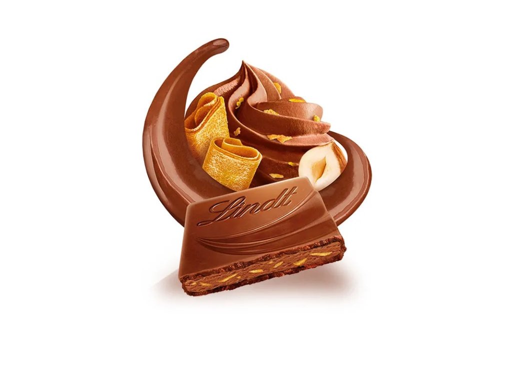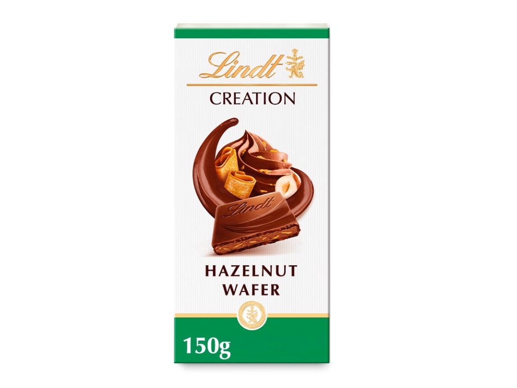 LindtLindt CREATION Mléčná čokoláda plněná kousky lískových oříšků a oplatky 150g